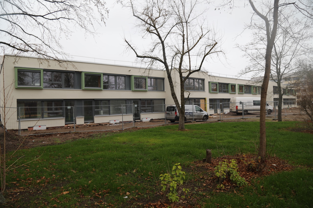 Im zuerst modernisierten Gebäudeteil befinden sich derzeit die Ausbaugewerke weiter in Umsetzung. Die Fußbodenheizung ist längst installiert, der neue Zuschnitt der Räume durch Tockenbauarbeiten abgeschlossen. Die Verlegung der Fliesen ist weit fortgeschritten, Malerarbeiten in etlichen Räumen bereits abgeschlossen. In Kürze ist die Verlegung des Bodenbelags vorgesehen.