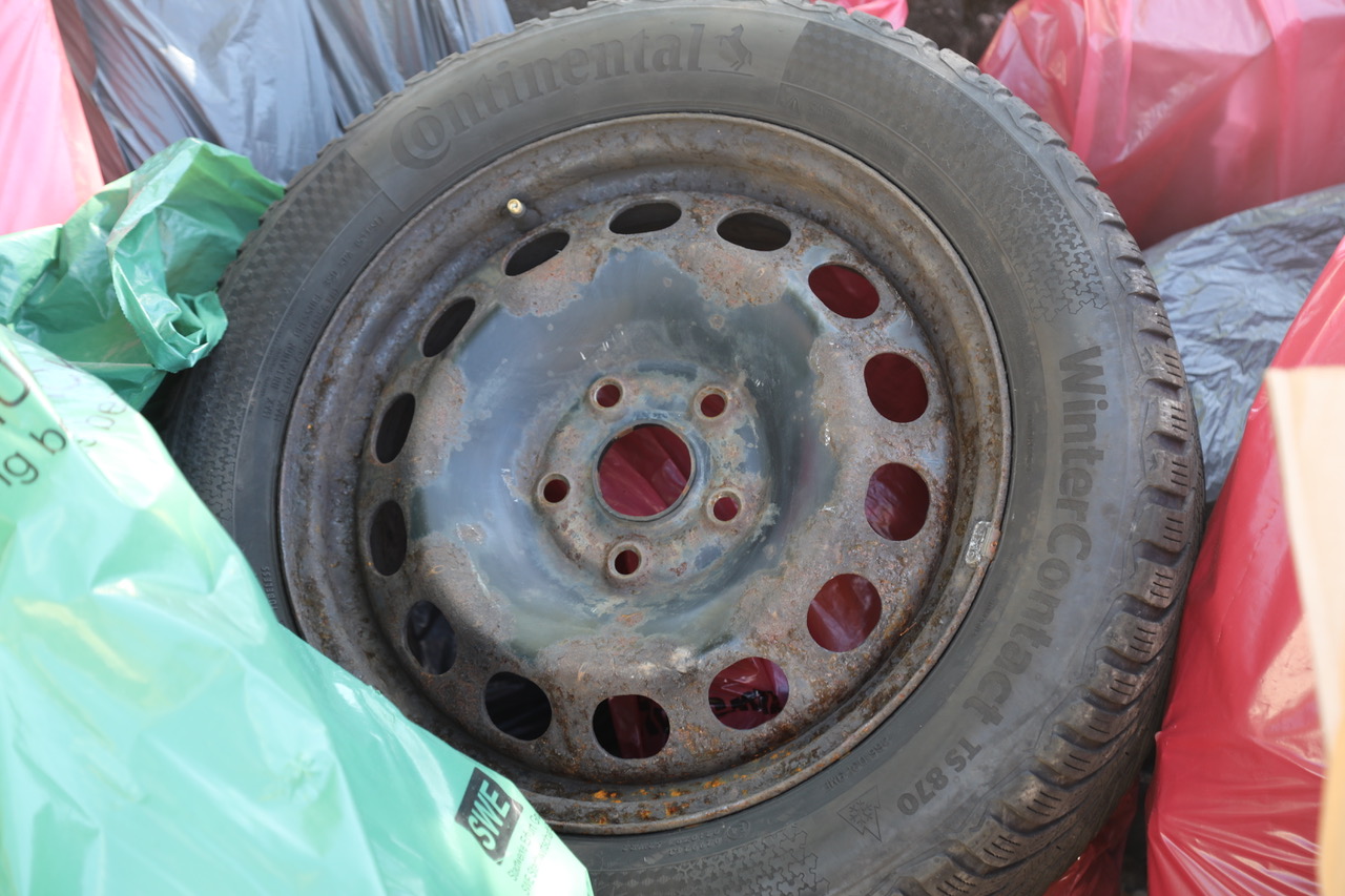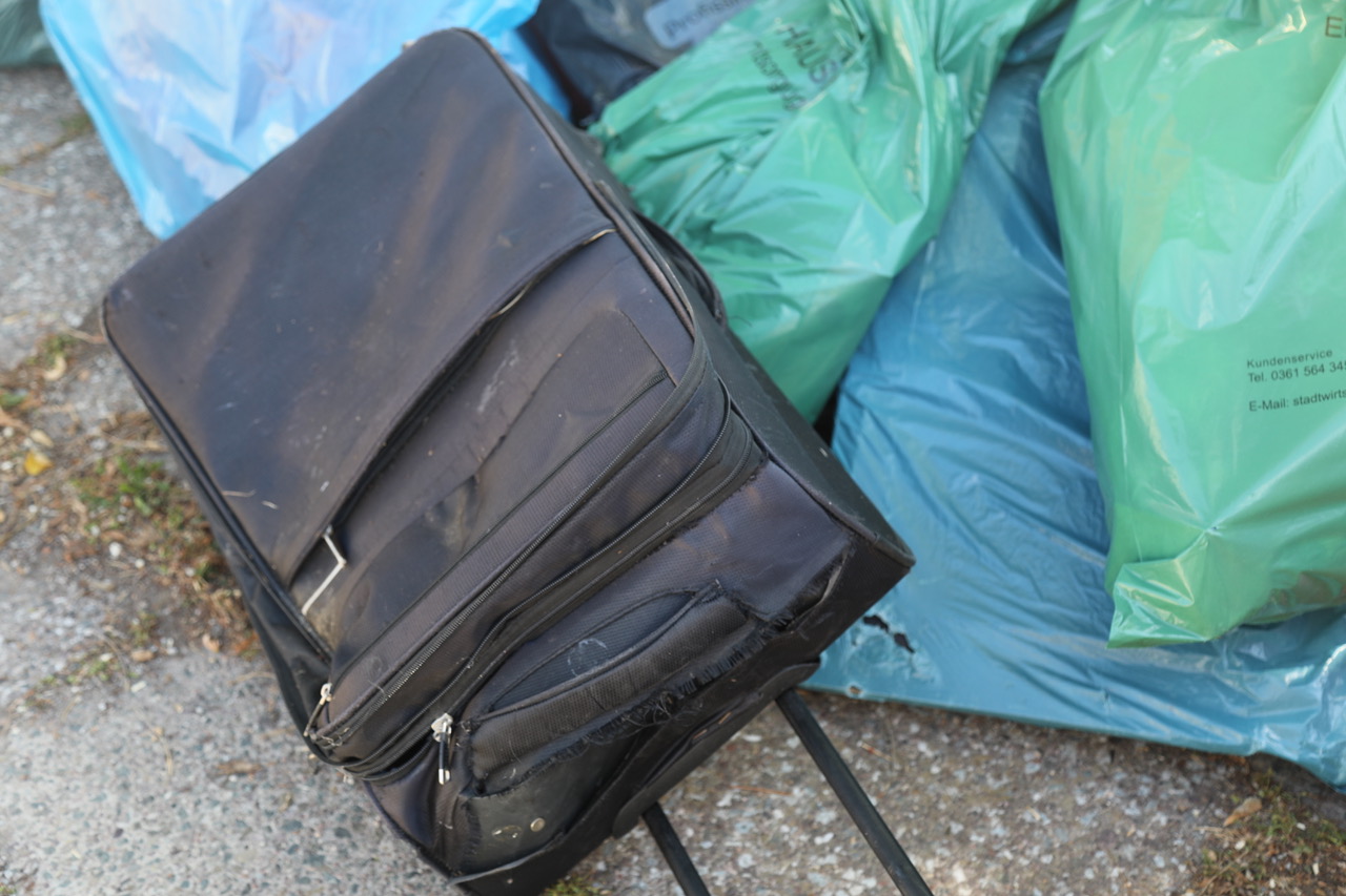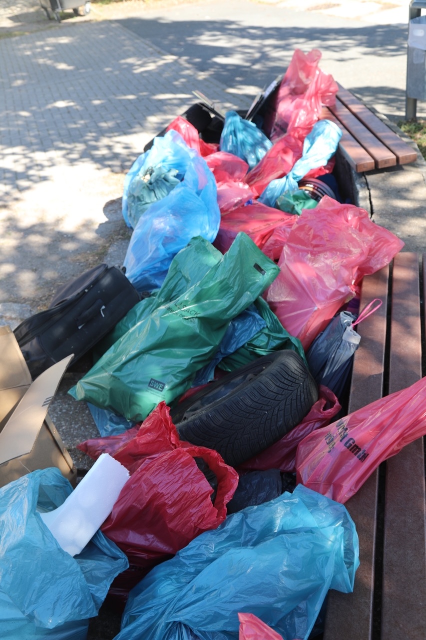 Am Roten Berg wurde bereits gestern in großem Radius um das Gebäude der Gemeinschaftsschule im Wohngebiet all das aufgesammelt, was achtlos weggeworfen oder absichtlich „kostenfrei“ entsorgt wurde – Autoreifen, der Rollkoffer verliert man schließlich nicht einfach so.
