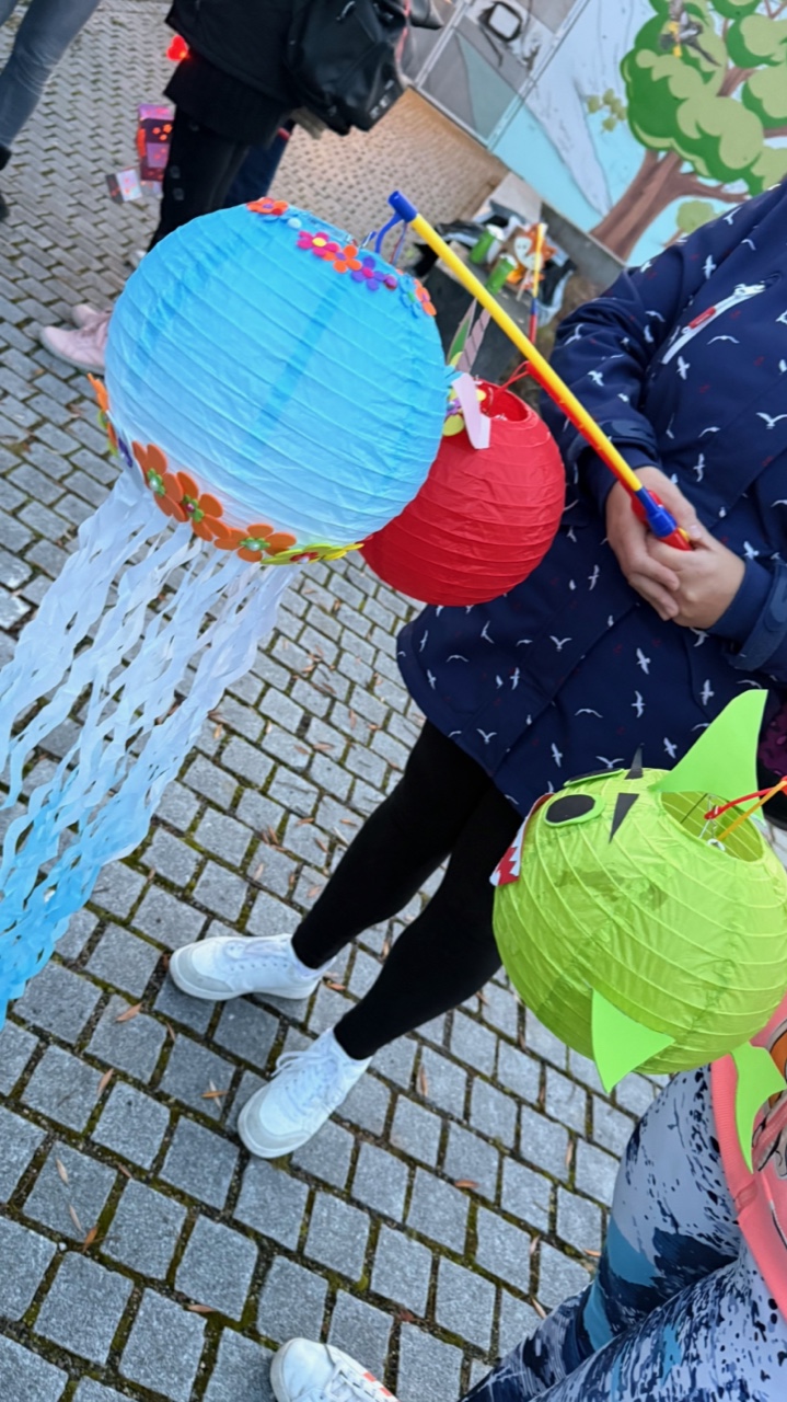 Ein besonderer Höhepunkt des Festes war der Besuch der Kinder der Otto-Lilienthal-Schule, die gegen 16 Uhr eintrafen, begleitet von zwei festlich beleuchteten Biketaxis. Für jedes Kind gab es ein Martinshörnchen.